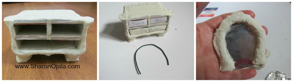 I used a mirror from a powder blush compact and framed that with homemade clay.
