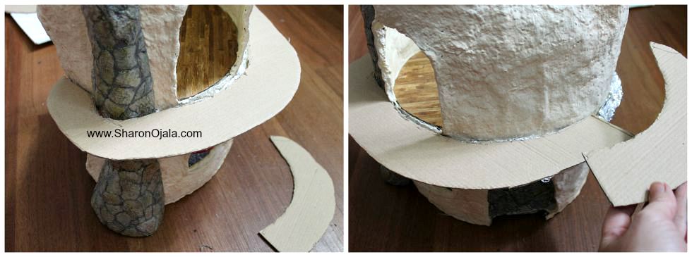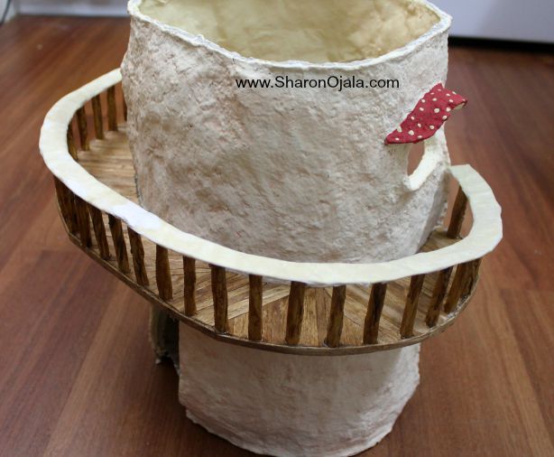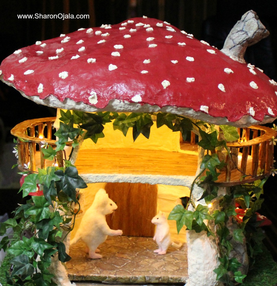 I made a foil form first for the stem part of the house then covered the foil in a homemade clay. Once the clay hardens the structure is solid. The cap is made the same way but as a separate piece.