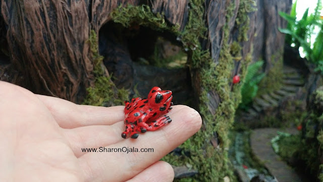 You will notice in close ups that one toe got a more rounded tip than the others. I actually spent the bulk of the time on these tiny toes! For being the first tiny frog I ever made I am proud of him. I won't complain or pick out all the mistakes.